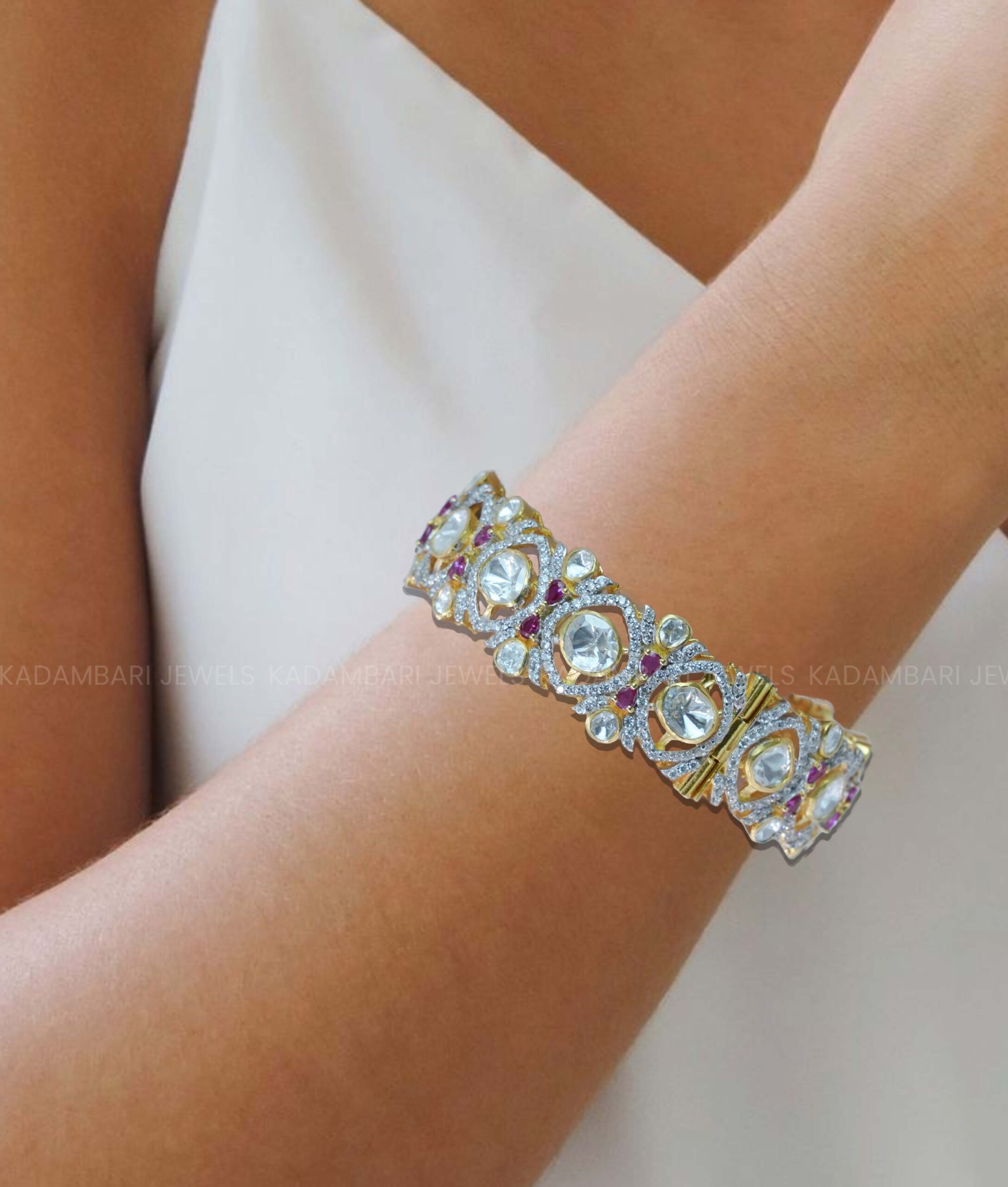 Ruby and Polki Diamond Cuff Bangle