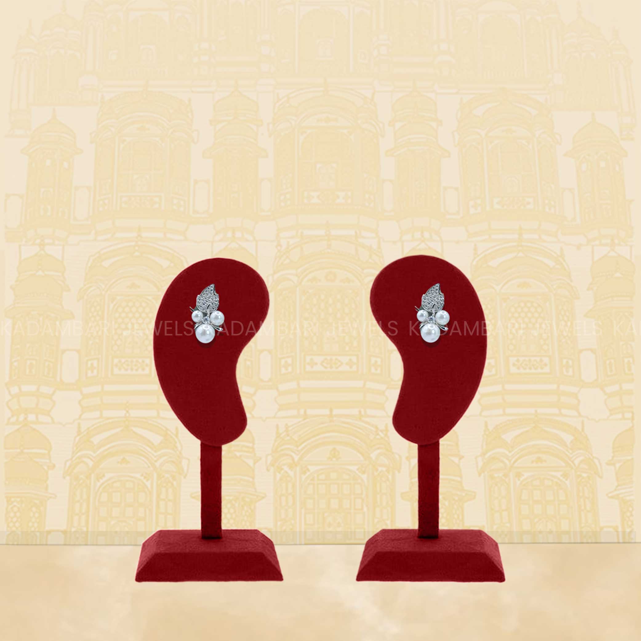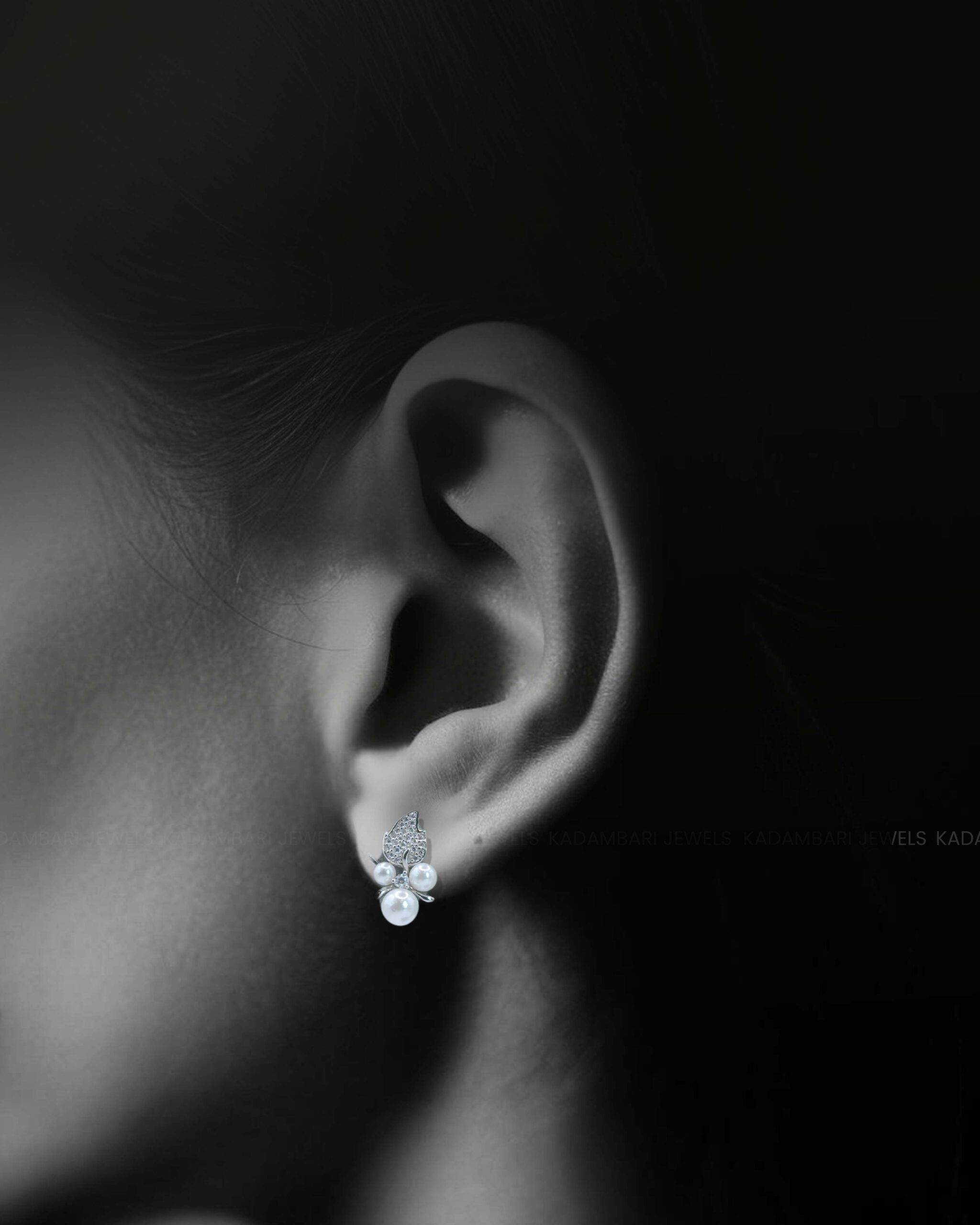 Timeless beauty meets modern design in these Kadambari Jewels stud earrings. Featuring lustrous pearls elegantly paired with a delicate diamond-studded leaf motif, they are perfect for classic sophistication with a touch of nature-inspired charm.