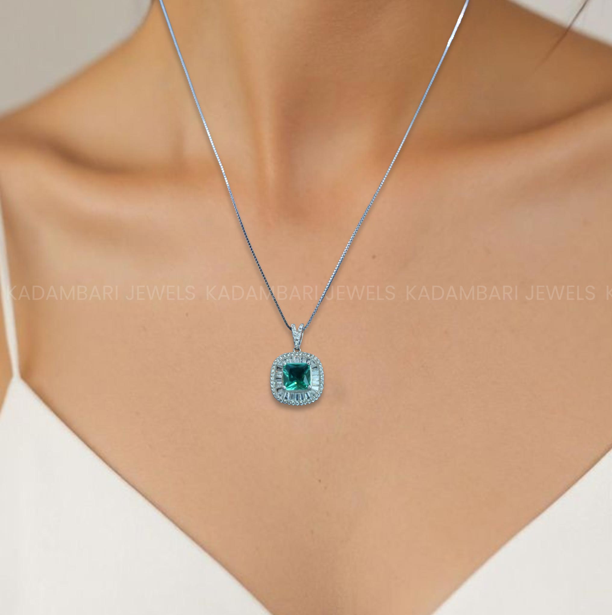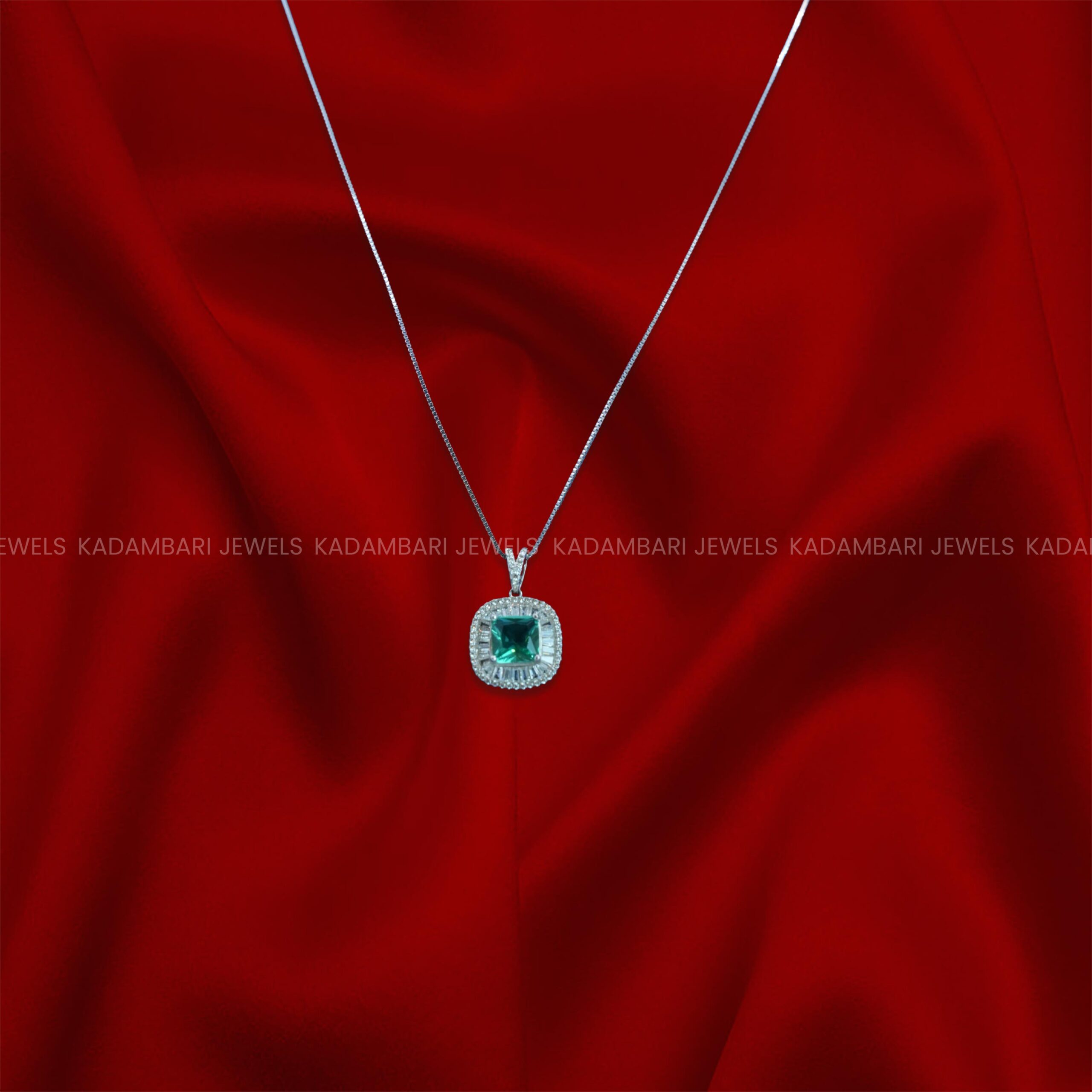 Radiate sophistication with this stunning emerald green pendant. A perfectly cushion-cut gemstone takes center stage, framed by a brilliant halo of sparkling diamonds, all set in elegant sterling silver. A timeless piece for any jewelry collection.