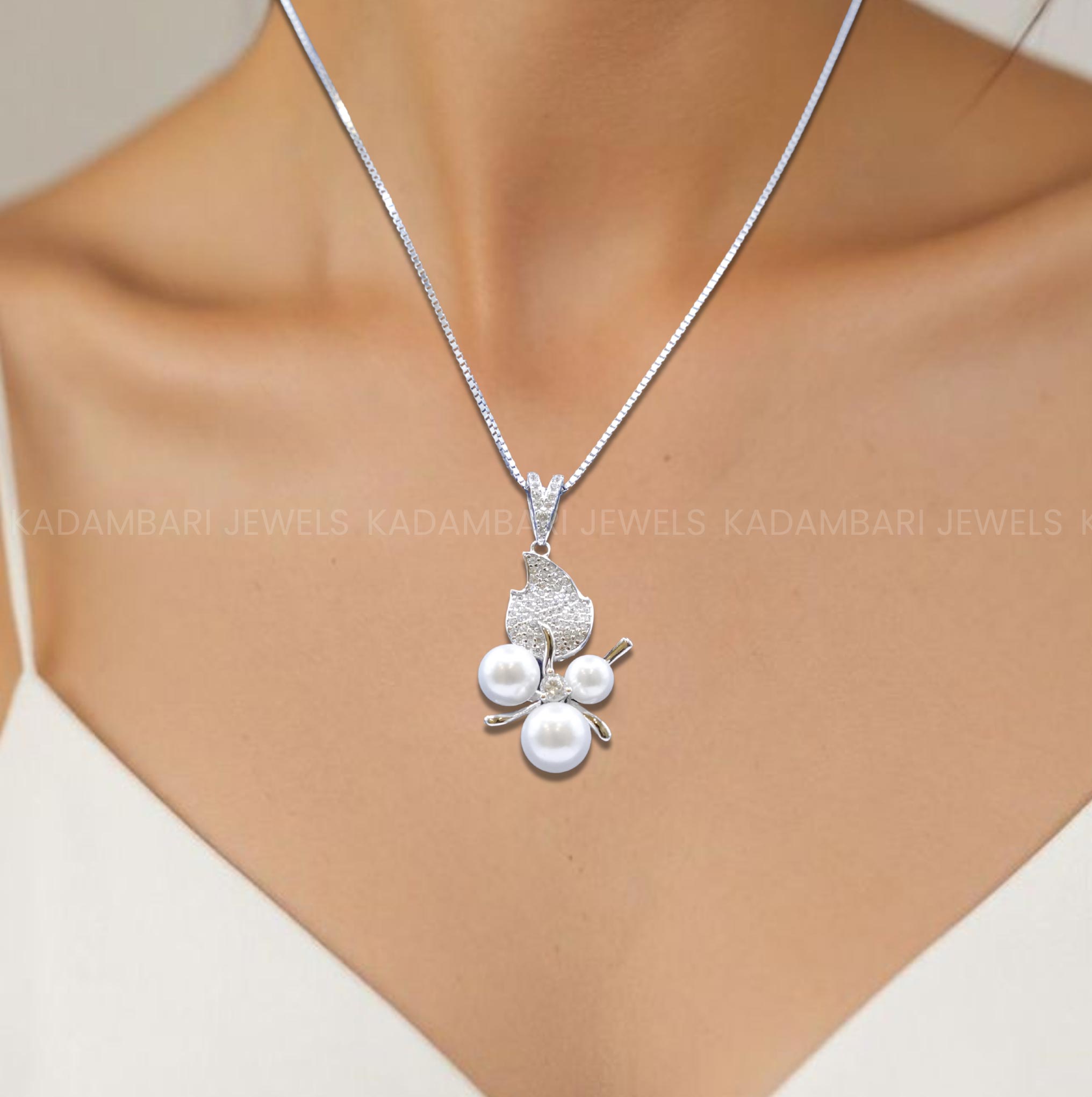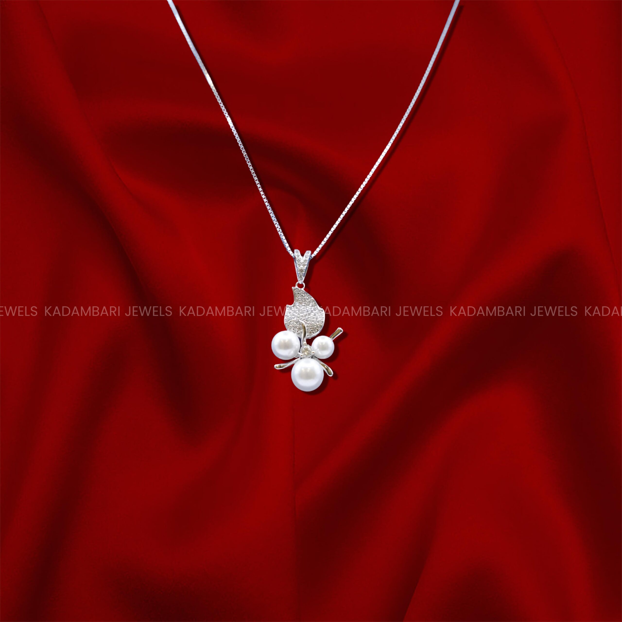Artistic Pearl & Silver Leaf Cluster Pendant