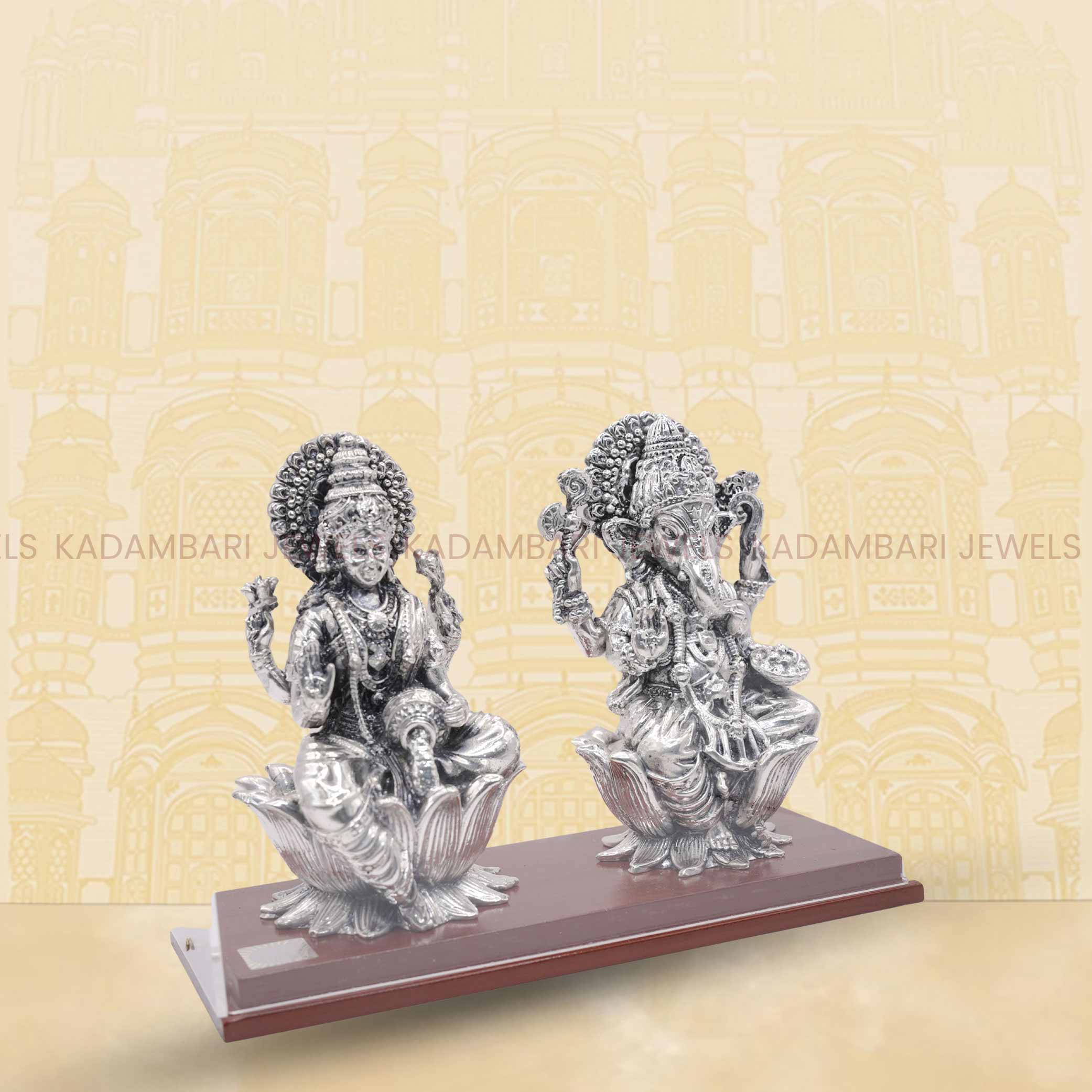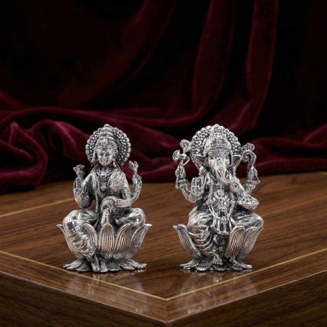 Silver-Plated Lakshmi & Ganesha Idol Pair